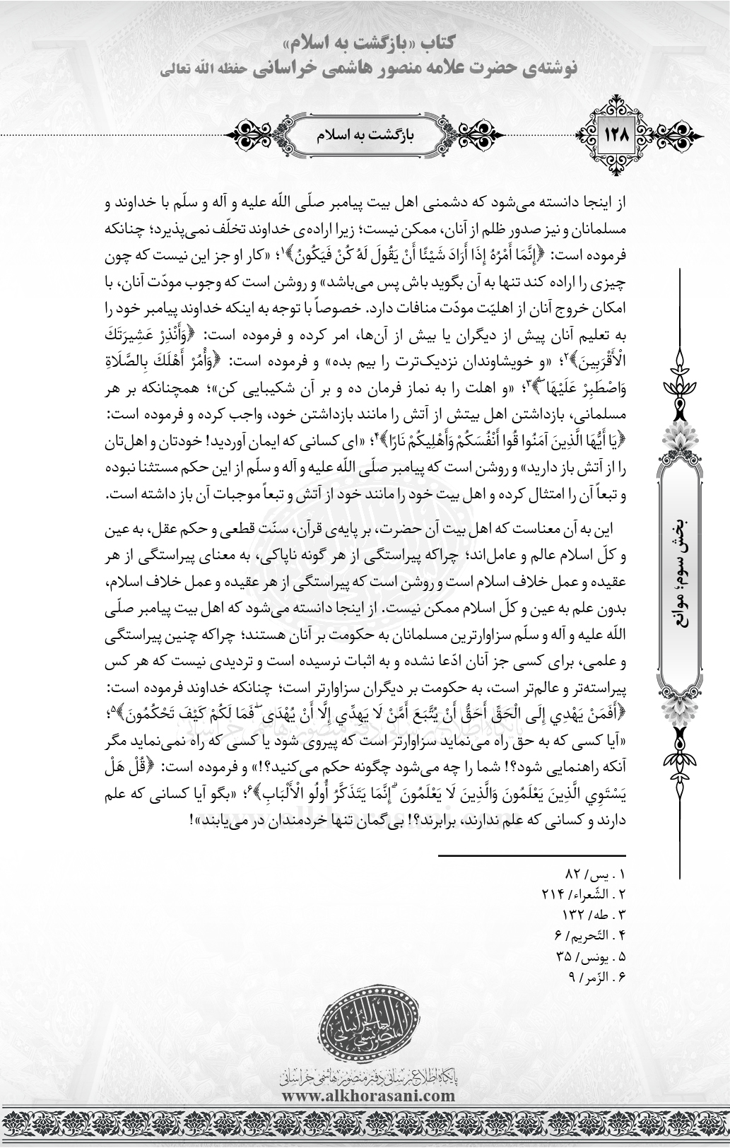 ↑[۶] . الزّمر/ ۹