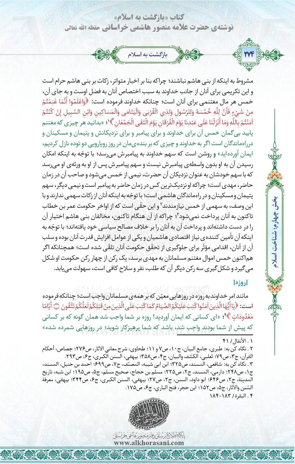 ↑[۴] . البقرة/ ۱۸۳-۱۸۴