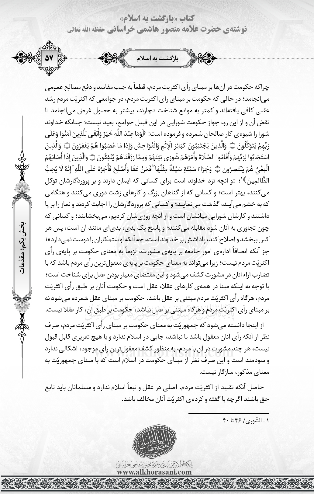 ↑[۱] . الشّوری/ ۳۶-۴۰