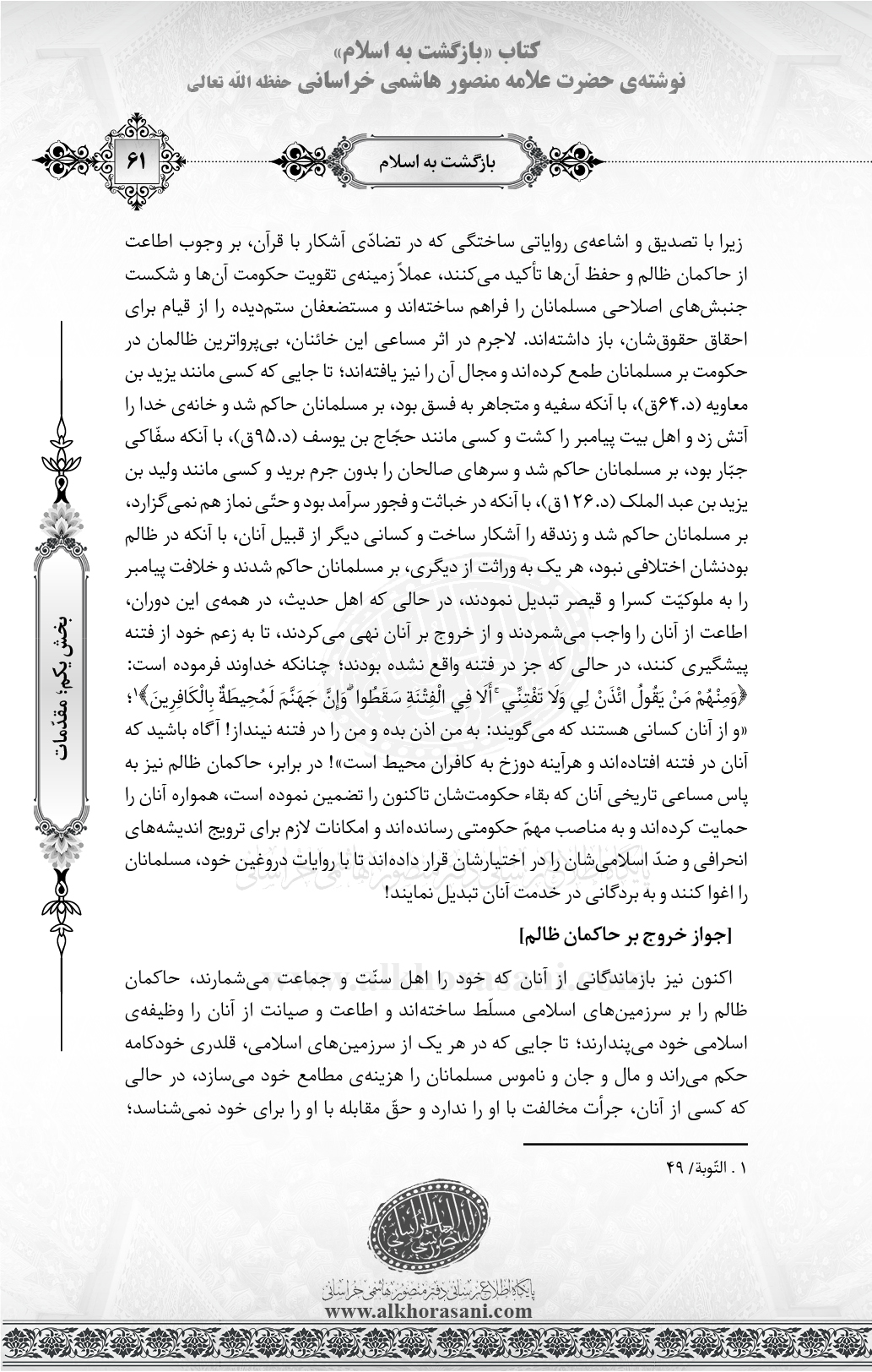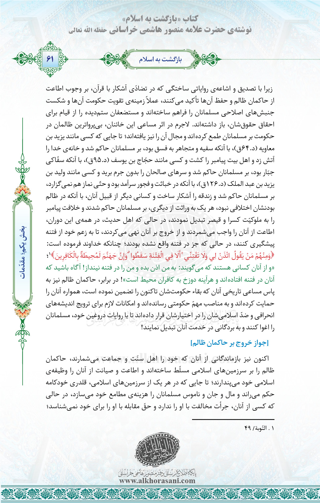 ↑[۱] . التّوبة/ ۴۹