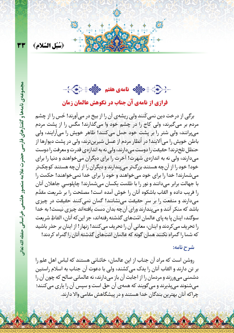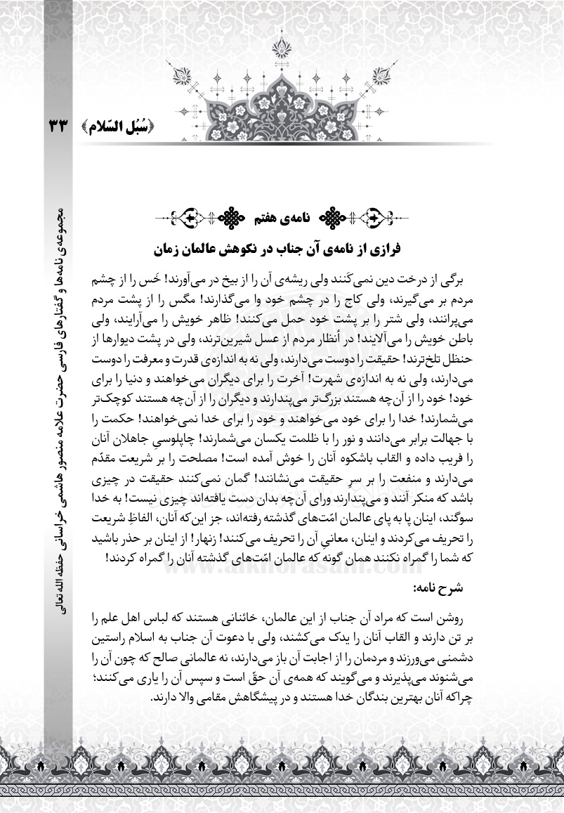 فرازی از نامه‌ی آن جناب در نکوهش عالمان زمان