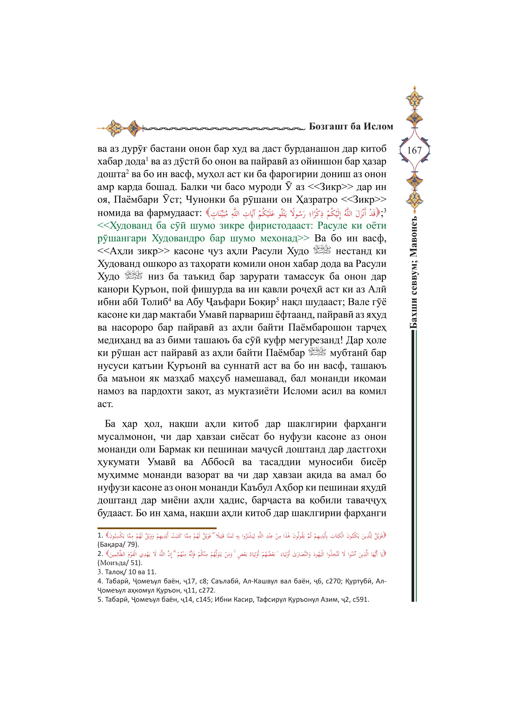 ↑[2] . ﴿يَا أَيُّهَا الَّذِينَ آمَنُوا لَا تَتَّخِذُوا الْيَهُودَ وَالنَّصَارَىٰ أَوْلِيَاءَ ۘ بَعْضُهُمْ أَوْلِيَاءُ بَعْضٍ ۚ وَمَنْ يَتَوَلَّهُمْ مِنْكُمْ فَإِنَّهُ مِنْهُمْ ۗ إِنَّ اللَّهَ لَا يَهْدِي الْقَوْمَ الظَّالِمِينَ﴾ (Моъида/ 51).